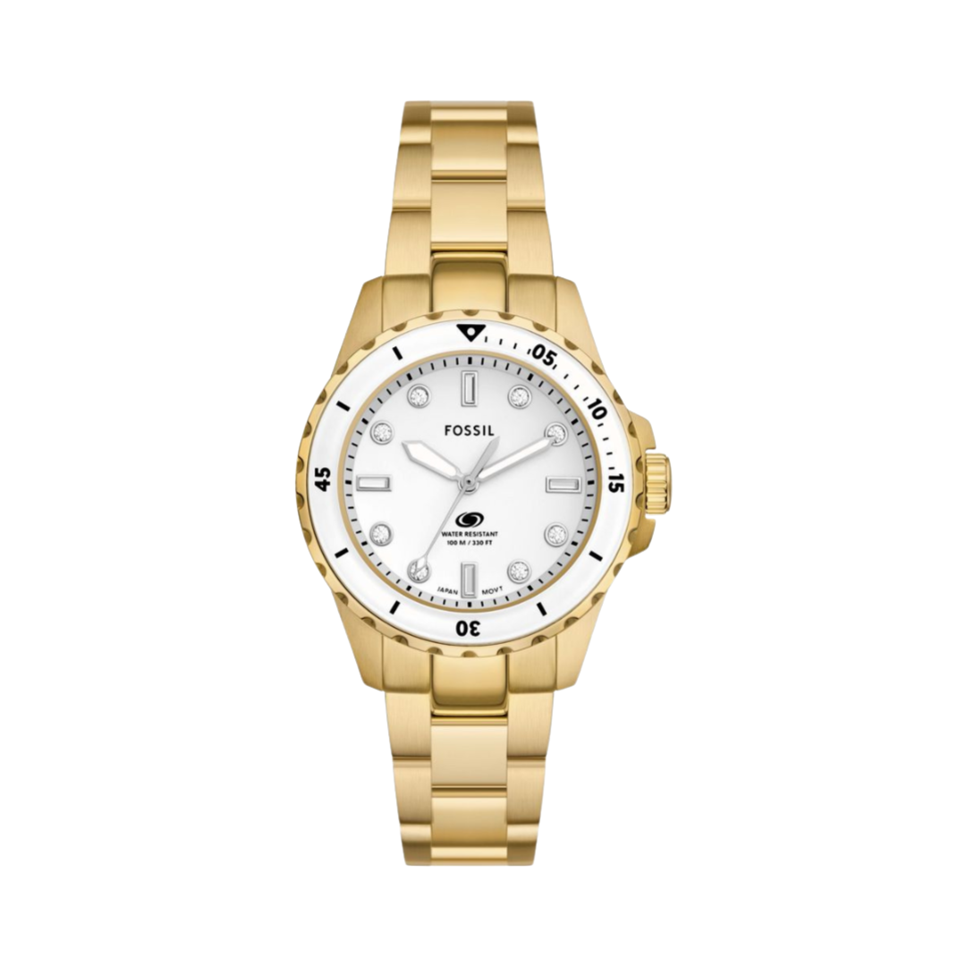 - Caja: 36 mm de diámetro en acero inoxidable dorado.